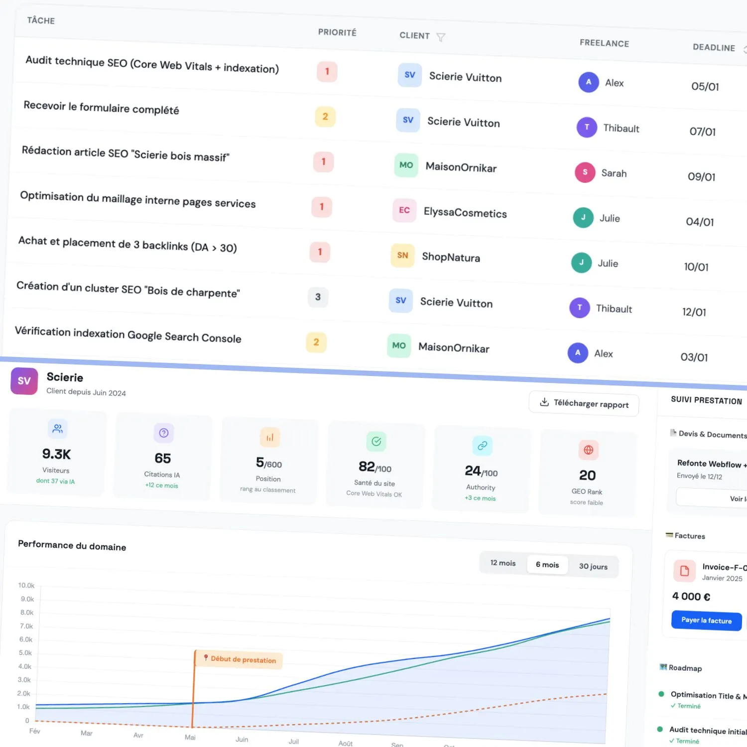 Sorank turns prospects into paying clients, then delivers the work automatically. Audits, tasks, freelancer management, and client portals in one platform.