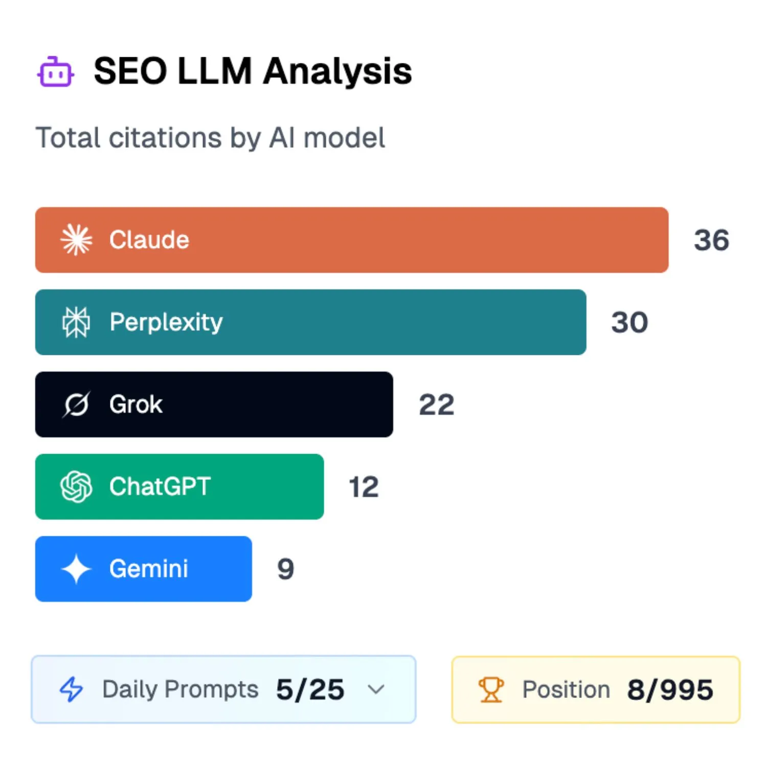 Sorank is built for GEO first, but GEO cannot exist without a minimum SEO foundation. That’s why the tool analyzes your keywords, your website structure, your technical issues and your competitors, everything you need to make AI models cite your site more often.