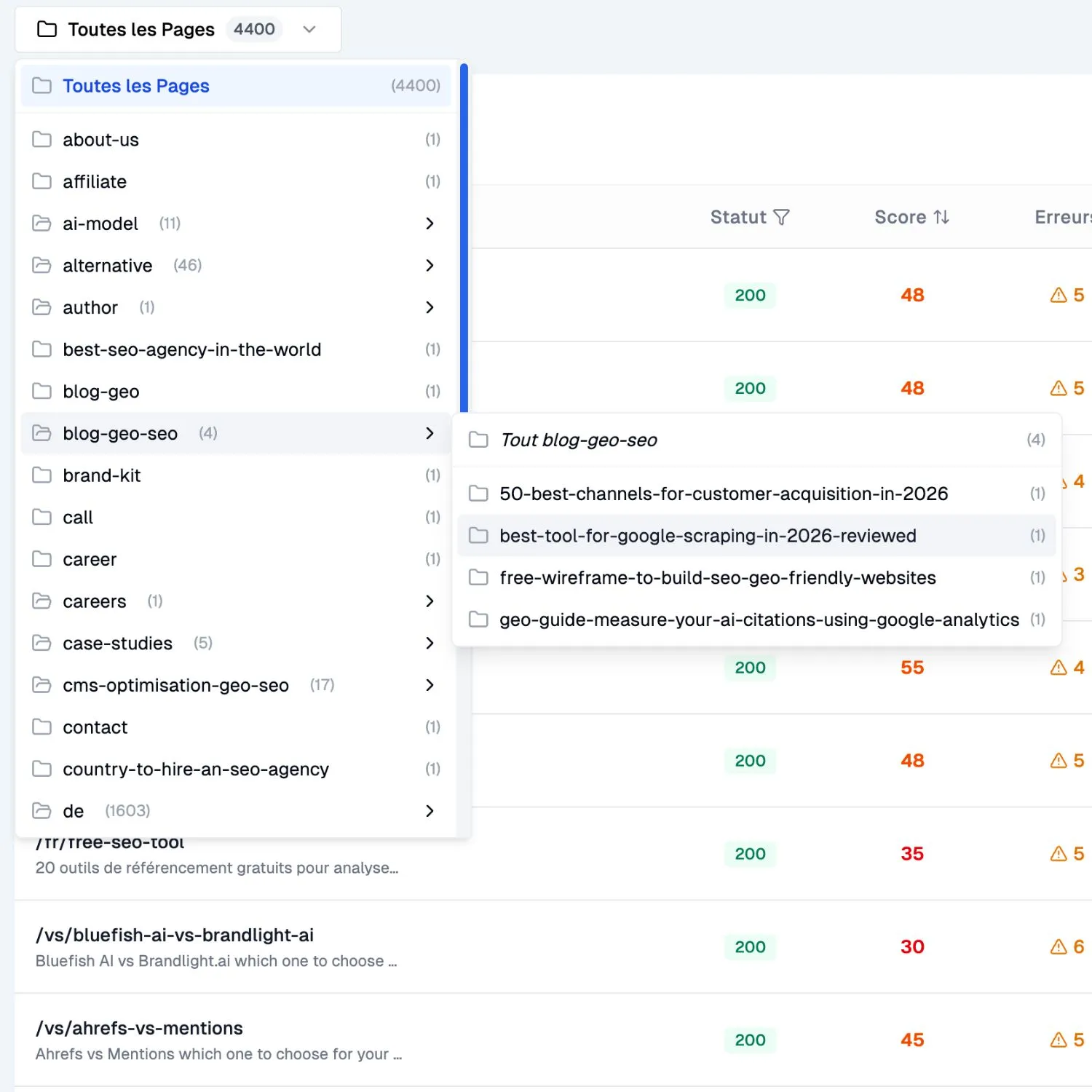 Não tem certeza de porque é que as suas classificações caíram ou porque é que os modelos IA raramente mencionam o seu site nas suas respostas? Com o relatório de auditoria GEO SEO, descobre problemas técnicos ocultos e obtém um roteiro claro para impulsionar a visibilidade IA e as classificações Google. Descubra abaixo os detalhes da funcionalidade.